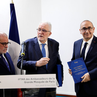 Monsieur le Ministre, je serai honoré de vous remettre officiellement ce soir un exemplaire de la Charte de Paris qui deviendra la référence de la contribution de la Grande Mosquée de Paris