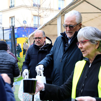 2000 chorbas et paniers alimentaires sont distribués chaque soir, rue des Poissonniers (18e), avec les bénévoles de l'association La Table Ouverte de Rachid Arar, que nous soutenons depuis plusieurs années.